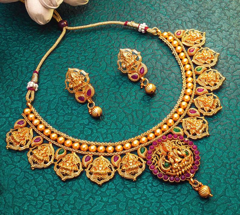 • multicolor Traditinal Gold Plated Alloy Necklace