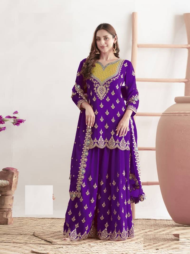 Chinon Silk Embroidered Semi Stitched Wedding Suits