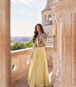 Pastel Yellow Pleated Lehenga With Floral Embroidered Jacket Stitched