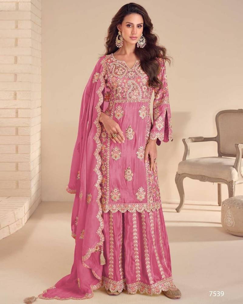 Shimmer Silk Embroidered Wedding Sharara Suits Min size-38 Max size -42