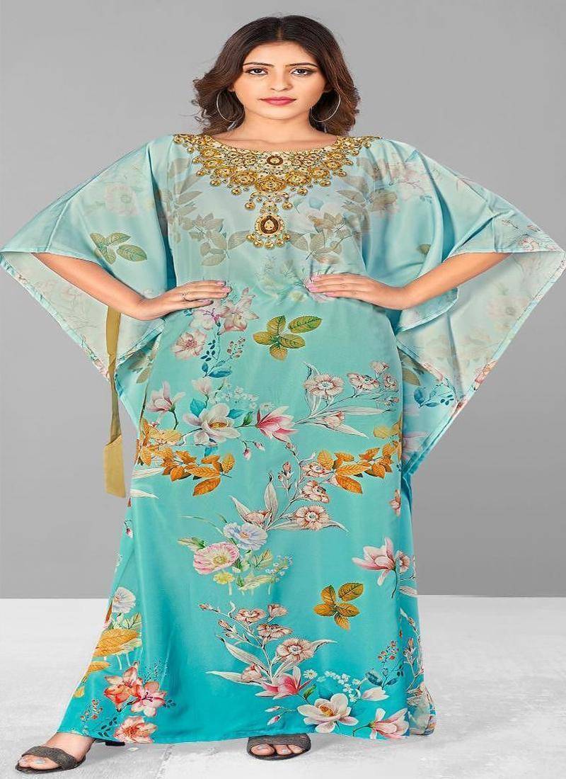Multicolor Digital Printed Stone Work Polyester Crepe Kaftan Full Stitched Free Size
