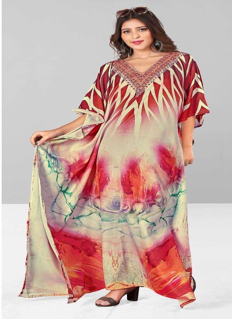 Multicolor Digital Printed Stone Work Polyester Crepe Kaftan Full Stitched Free Size