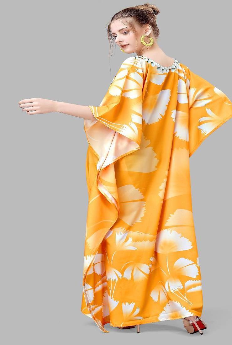 Multicolor Digital Printed Stone Work Polyester Crepe Kaftan Full Stitched Free Size