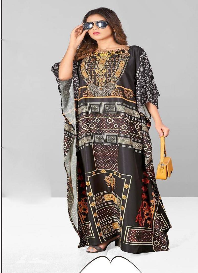 Multicolor Digital Printed Stone Work Polyester Crepe Kaftan Full Stitched Free Size