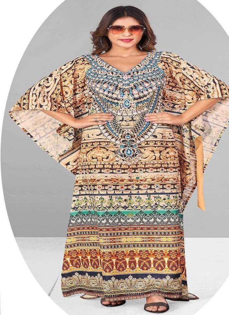 Multicolor Digital Printed Stone Work Polyester Crepe Kaftan Full Stitched Free Size