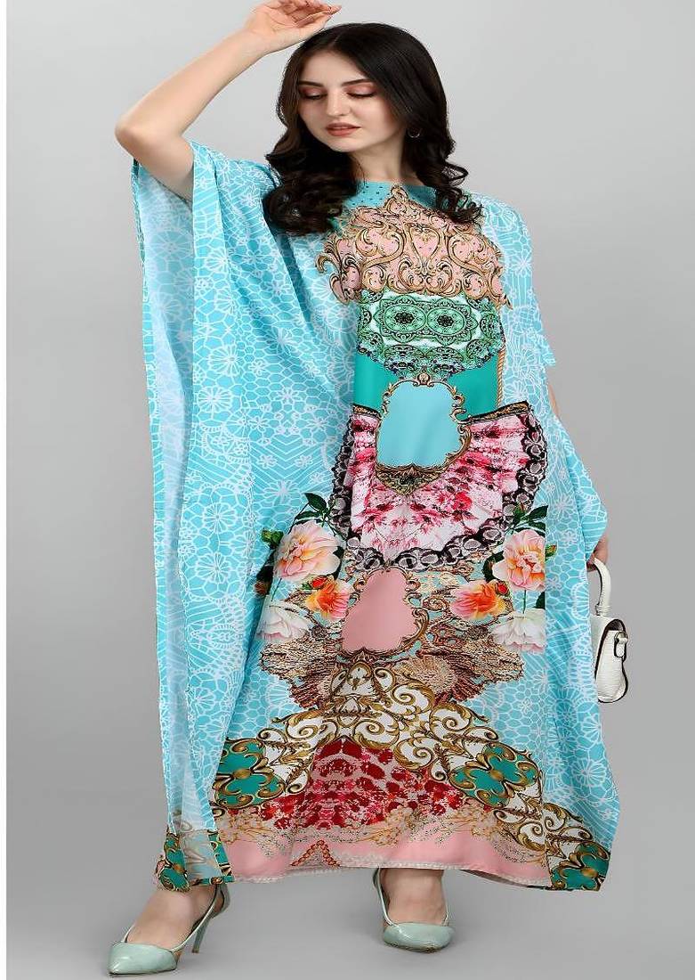 Multicolor Digital Printed Stone Work Polyester Crepe Kaftan Full Stitched Free Size