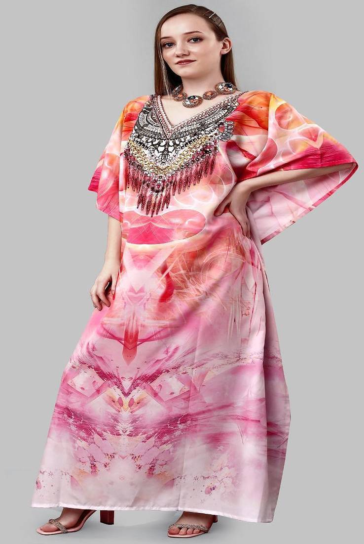 Multicolor Digital Printed Stone Work Polyester Crepe Kaftan Full Stitched Free Size