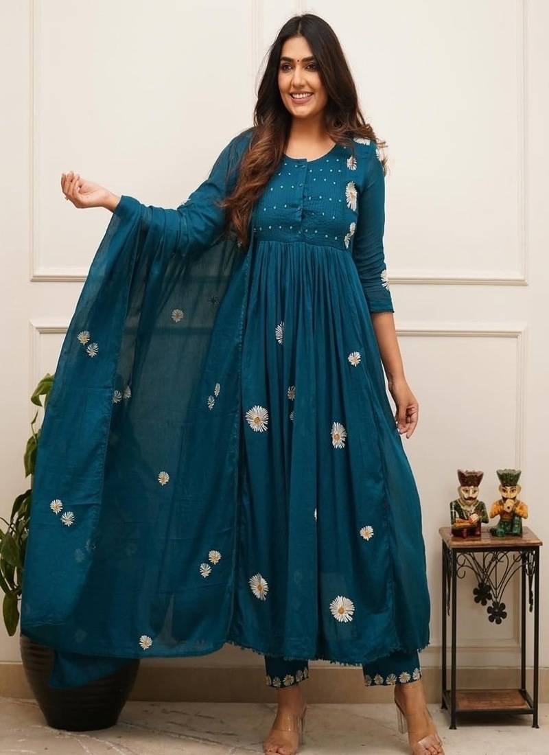 • Product Id : 4681888 • Package Details : 1 Kurta / 1 Trosuer / 1 Dupatta • Type : Kurta Sets • Region : India • Occasion : Casual • Fabric : Cotton • Work : Embroidered • Type : Hand Embroidery • Look : Fashion • Sleeve : Quarter Sleeve • Neck Style : Round Neck • Color : Blue • Stitching : Stitched • Length : 44.0 Payments [+]