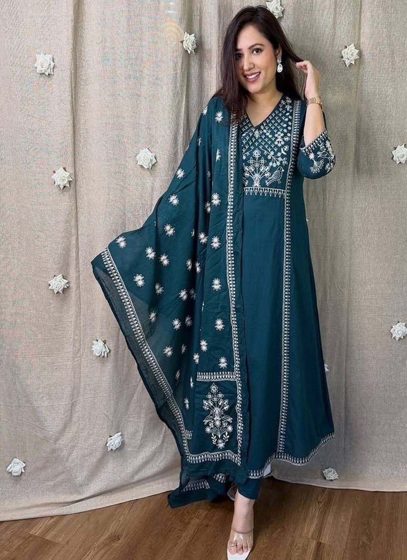 • Product Id : 4681881 • Package Details : 1 Kurta / 1 Trosuer / 1 Dupatta • Type : Plus Size Kurtis • Region : India • Occasion : Casual • Fabric : Cotton • Work : Embroidered • Type : Hand Embroidery • Look : Fashion • Sleeve : Quarter Sleeve • Neck Style : V Neck • Color : Blue • Stitching : Stitched • Length : 44.0 Payments [+]