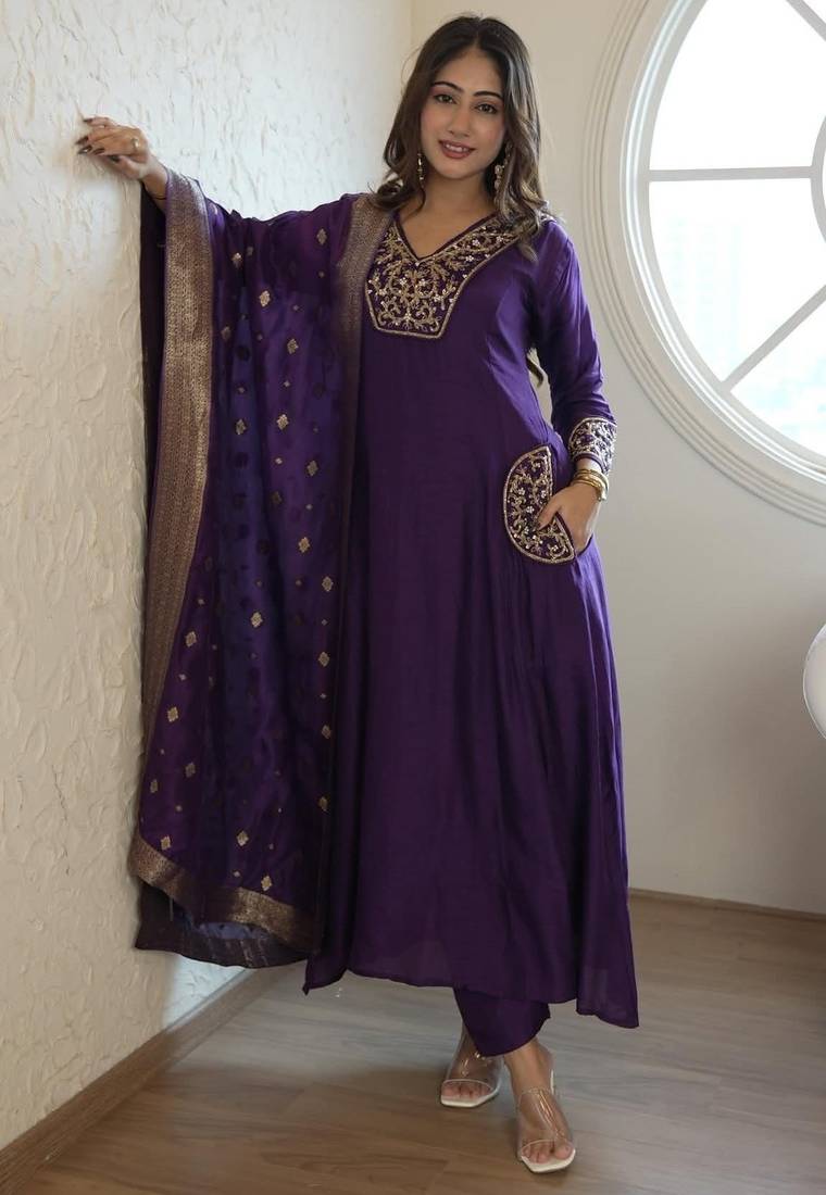 Blue kurta set for women, purple embroidered kurta set, festive wear suit set, anarkali ethnic wear women, traditional kurta trouser dupatta set, party wear ethnic dress