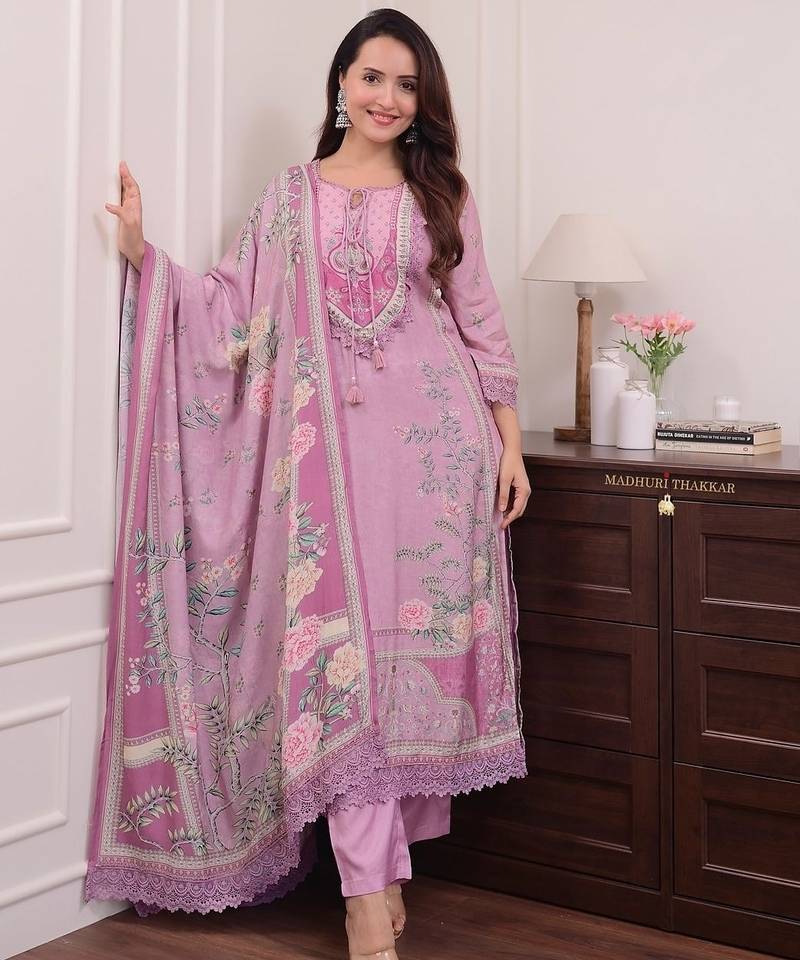 If you find the product for less we'll match it! Know MoreElevate your ethnic wardrobe with this Floral Embroidered Pink Round-Neck Kurta Set, designed for effortless sophistication and all-day comfort. The charming pink hue paired with delicate floral embroidery creates a graceful and feminine ensemble perfect for festive occasions, celebrations, office gatherings, or casual ethnic outings.