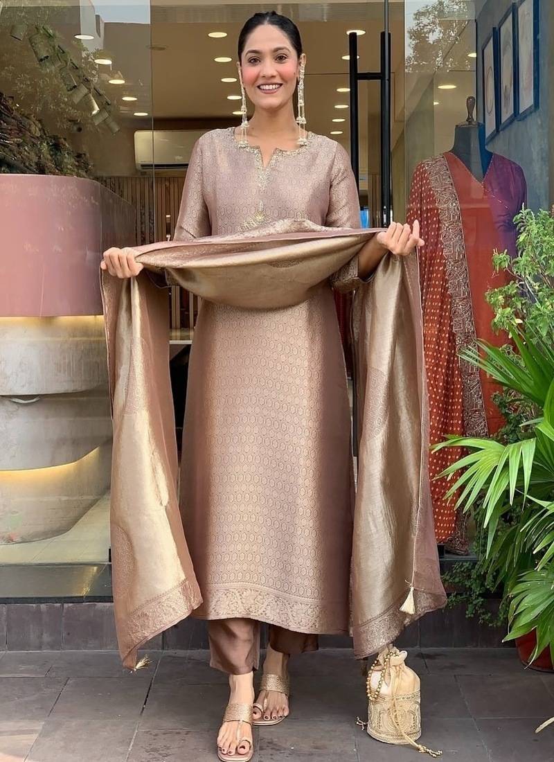 • Product Id : 4711759 • Package Details : 1 Kurta / 1 Trouser / 1 Dupatta • Type : Kurta Sets • Region : India • Occasion : Casual • Fabric : Tissue • Work : Embroidered • Type : Hand Embroidery • Look : Fashion • Sleeve : Full Sleeve • Neck Style : Round Neck • Color : Brown • Stitching : Stitched • Length : 44.0 Payments [+]