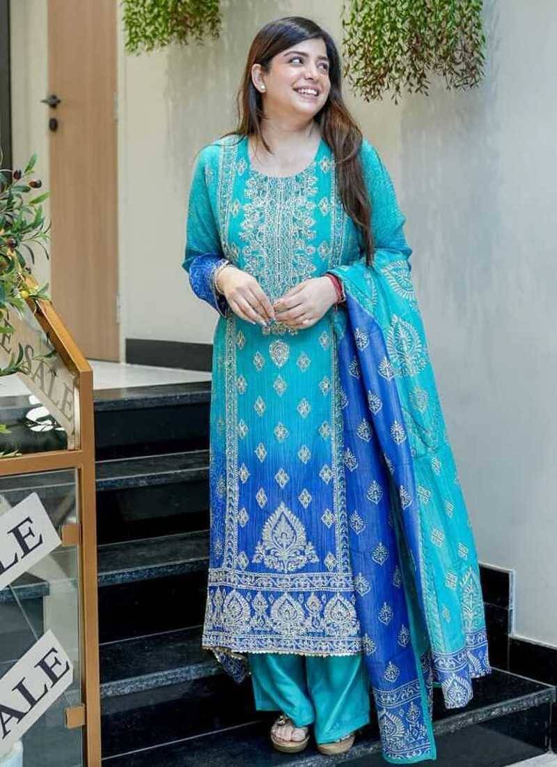 • Product Id : 4683326 • Package Details : 1 Kurta / 1 Trosuer / 1 Dupatta • Type : Kurta Sets • Region : India • Occasion : Casual • Fabric : Silk • Work : Embroidered • Type : Hand Embroidery • Look : Fashion • Sleeve : Quarter Sleeve • Neck Style : U Neck • Color : Blue • Stitching : Stitched • Length : 44.0 Payments [+]