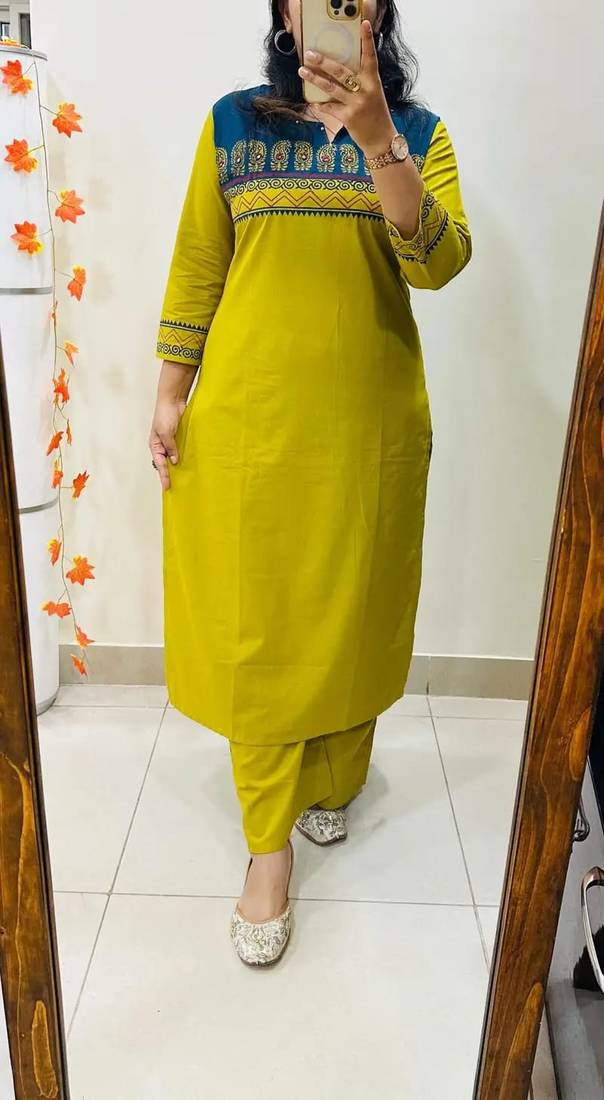 ✔ Perfect for casual wear, festive gatherings & daily elegance• Product Id : 4669070 • Package Details : 1 Kurta / 1 Trouser • Type : Plus Size Kurtis • Region : India • Occasion : Casual • Fabric : Cotton • Work : Printed • Type : Floral Print • Look : Fashion • Sleeve : Quarter Sleeve • Neck Style : Round Neck • Color : Green • Stitching : Stitched • Length : 44.0 General - Color and Texture may have slight variation. This happens because of photography.