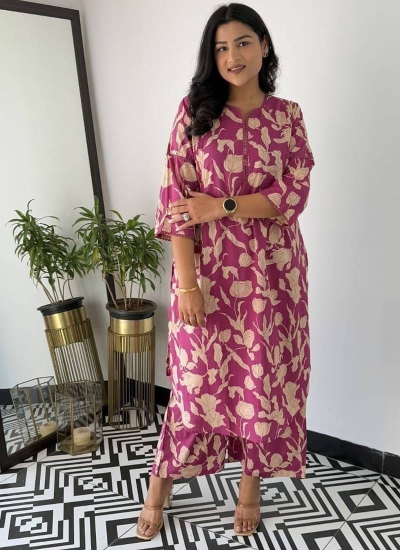 ✔ Perfect for office & casual gatherings• Product Id : 4669063 • Package Details : 1 Kurta / 1 Trouser • Type : Kurta Sets • Region : India • Occasion : Casual • Fabric : Cotton • Work : Printed • Type : Floral Print • Look : Fashion • Sleeve : Quarter Sleeve • Neck Style : Round Neck • Color : Pink • Stitching : Stitched • Length : 44.0 General - Color and Texture may have slight variation. This happens because of photography.
