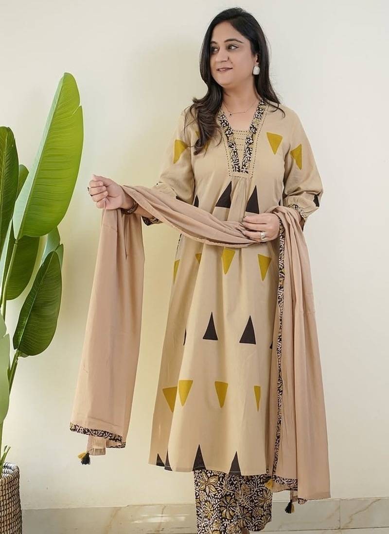 • Product Id : 4692779 • Package Details : 1 Kurta / 1 Trouser / 1 Dupatta • Type : Plus Size Kurtis • Region : India • Occasion : Casual • Fabric : Cotton • Work : Printed • Type : Floral Print • Look : Fashion • Sleeve : Quarter Sleeve • Neck Style : V Neck • Color : Cream • Stitching : Stitched • Length : 44.0 Payments [+]