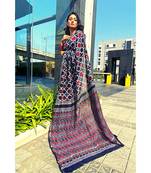 Multicolor Ajrakh Handcrafted On Chanderi Silk& With Running Blouse