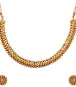 Gold Plated Royal Golden Beads Studded Beautiful Ethnic Necklace Set For Womens