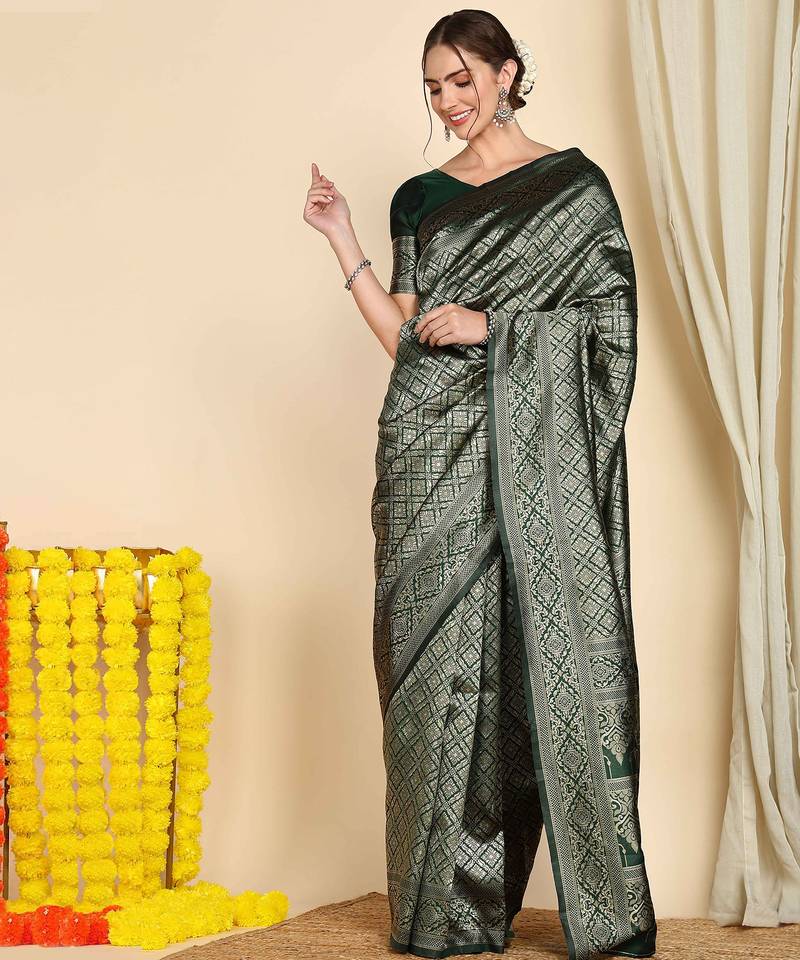 • Color : Green • Work : Woven • Fabric Of : Banarasi Silk • Available : Yes • Size : 80 Cm • Fabric : Banarasi Silk • Color : Green • Work : Woven • As Per Image : No Petticoat Details