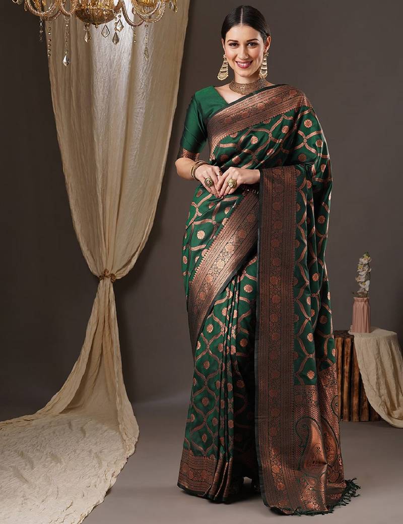 $27.0$79.53(66% OFF)price changedSelect SizexGreen Soft Silk Blend Banarasi Jacuard Work Designer Party Wear Saree With Unstitched Blouse Piece$27.0$79.5366% OFFSize$27.0$79.53(66% OFF)Size$27.0$79.53(66% OFF)Product ID : 4722241Estimated Delivery: 22 Mar 2026NEED HELP ?Price Match Promise