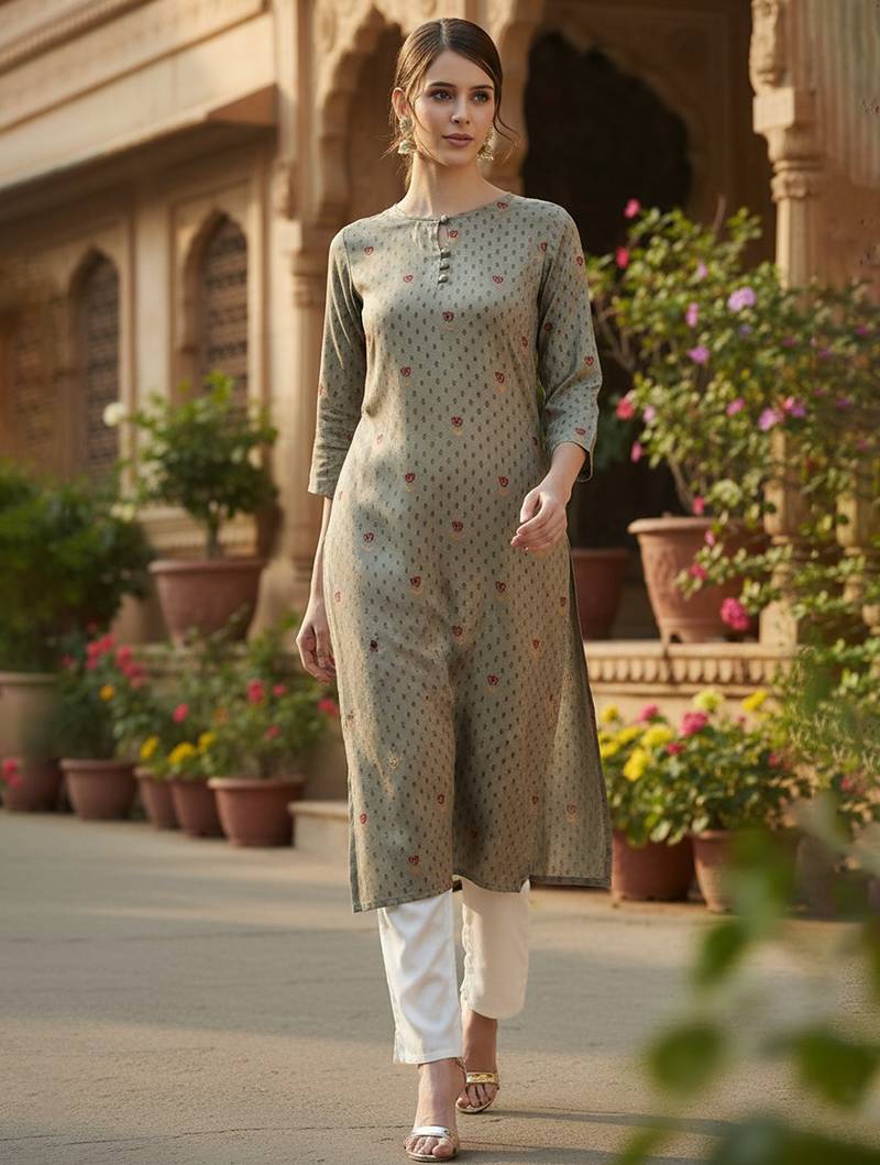 • Product Id : 4699992 • Package Details : 1 Kurta • Type : Kurtis • Region : India • Occasion : Casual • Fabric : Viscose Rayon • Work : Printed • Type : Floral Print • Look : Fashion • Sleeve : Quarter Sleeve • Neck Style : Round Neck • Color : Olive • Stitching : Stitched • Length : 46.0 • Side Slit : Yes Payments [+]