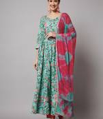 Sea Green And Red Floral Maxi Dress With Dupatta