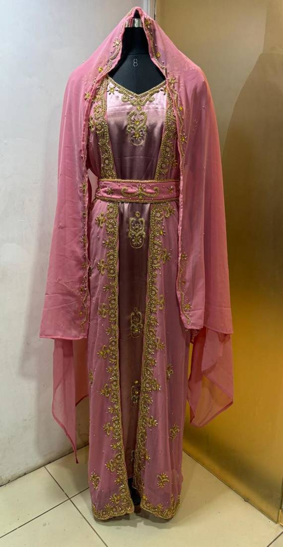 This fancy kaftans is best for special occasions and birthday parties. It is made with finest gorogette jacket and satin inner material and good care has been taken while in beading and stitching. This beautiful kaftan comes with the attached lining in different sizes like XS, S, M, L, XL, XXL, 3XL, 4XL and Free size
