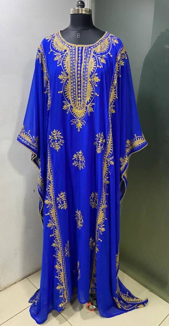 • Product Id : 4690494 • Package Details : 1 Kaftan • Type : Kaftans • Occasion : Casual • Fabric : Georgette • Work : Embroidered • Look : Designer • Sleeve : Full Sleeve • Neck Style : Round Neck • Color : Royal Blue • Stitching : Stitched Payments [+]