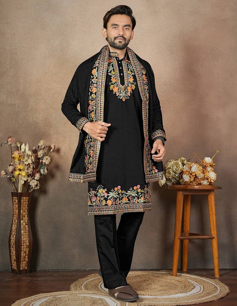 • Product Id : 4689583 • Package Details : 1 Top : 1 Bottom : 1 Dupatta • Type : Kurta • Occasion : Wedding • Fabric : Silk • Work : Embroidered • Type : Sequins Work • Look : Designer • Sleeve : Full Sleeve • Neck Style : Chinese Collar Kameez • Color : Black • Bottom Fabric : Cotton • Bottom Color : Black • Top Color : Black • Top Fabric : Silk • Bottom Style : Pyjama • Chunari Fabric : Silk • Chunari Color : Black • Stitching : Stitched Payments [+]
