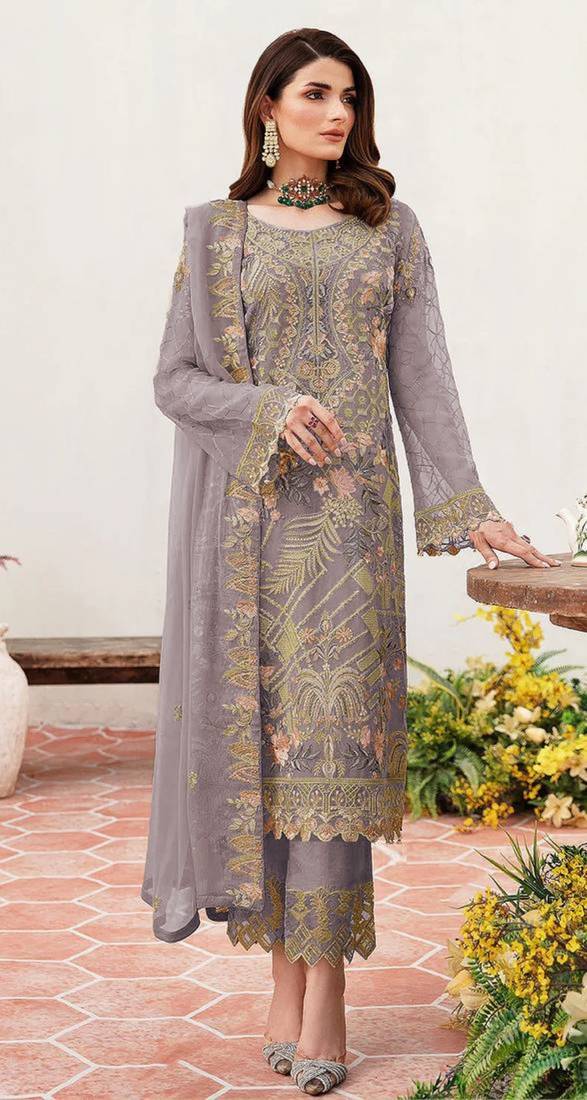 Chiku Faux Georgette Embroidered Sequin Suit Semi stitched