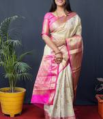 Cream Woven Work Kanchipuram Silk Blend Saree