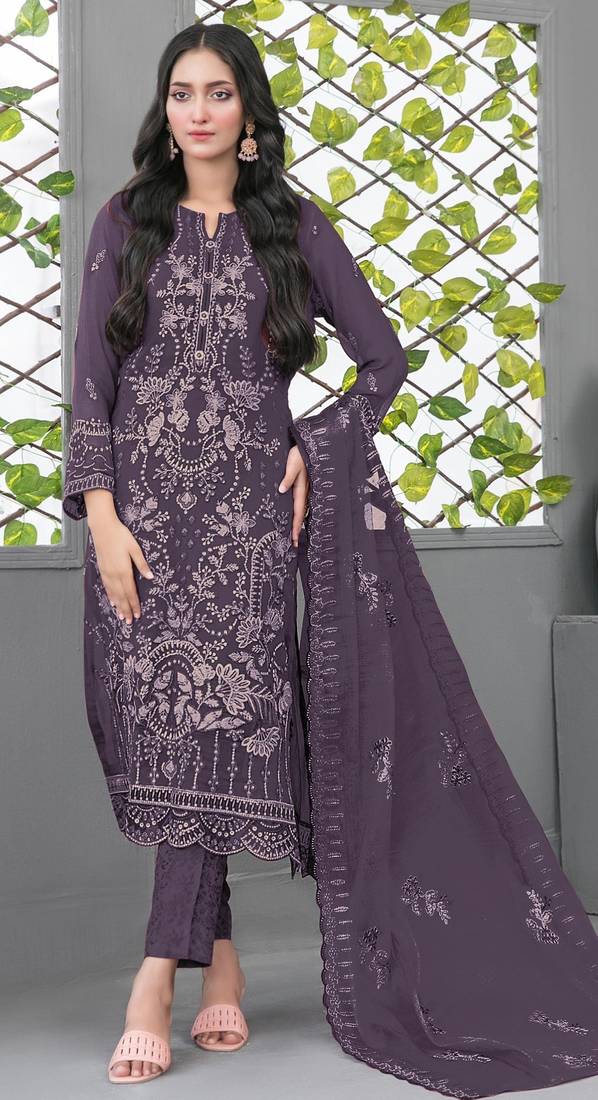 • Kameez : Color- Dark Lavender • Dupatta : Color- Dark Lavender / Fabric- Faux Georgette • Bottom : Color- Dark Lavender / Fabric- Santoon Kameez Details