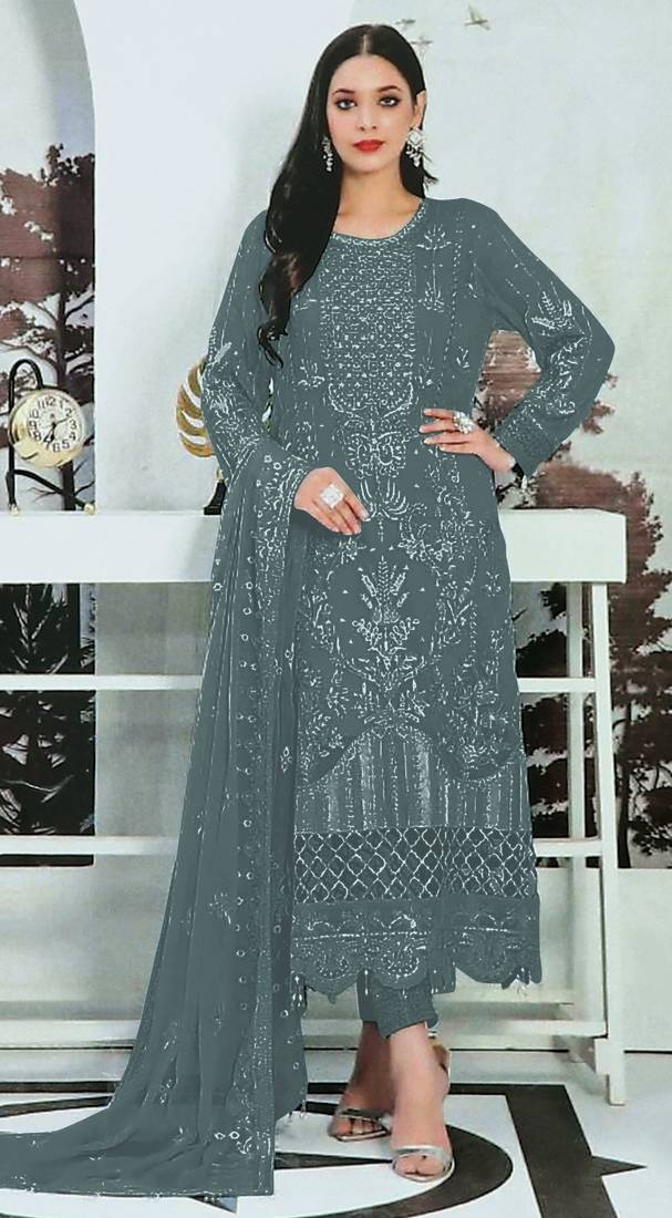 • Product Id : 4387183 • Package Details : 1 Top/1 Bottom/1 Dupatta • Type : Pakistani Dresses Salwar Kameez & Suits • Work : Embroidered • Type : Hand Embroidery • Look : Designer • Sleeve : Full Sleeve • Stitching : Semi Stitched • Color : Grey • Fabric : Faux Georgette • Min Bustsize Fit : 34.0 • Max Bustsize Fit : 52.0 Stitching [+]