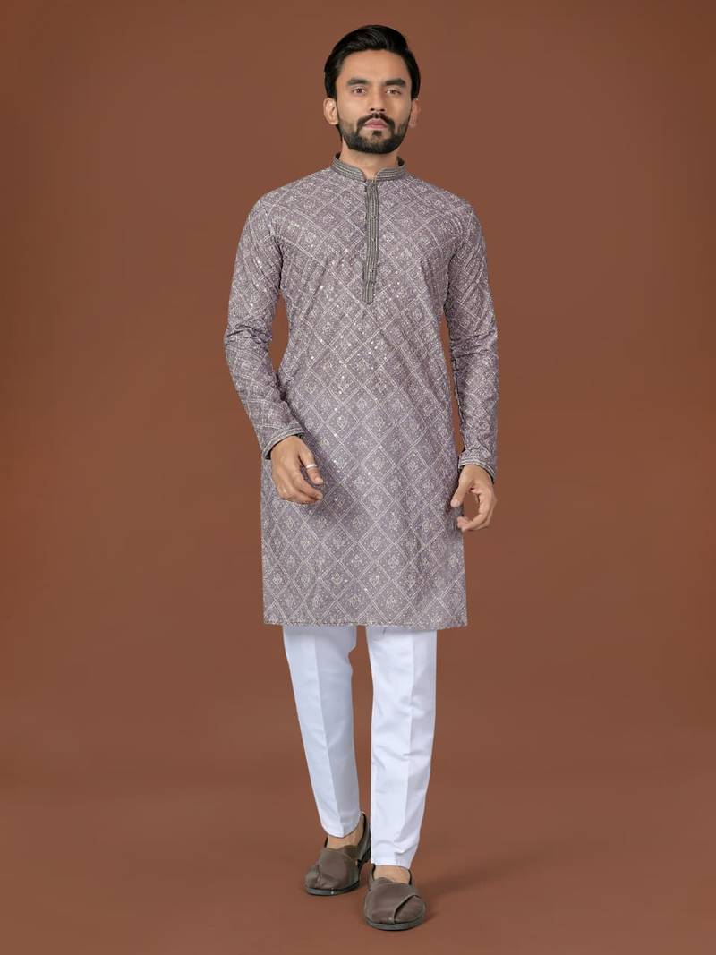 Grey Lucknowi Silk Straight Kurta