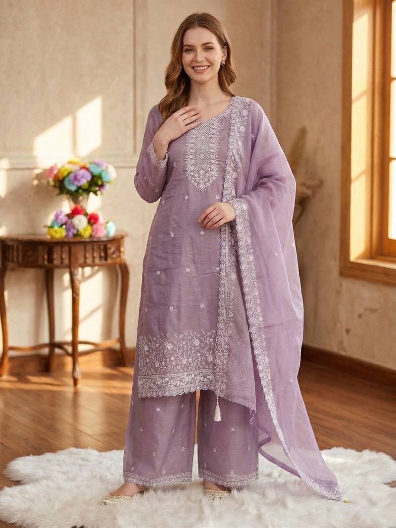 If you find the product for less we'll match it! Know More• Product Id : 4746512 • Package Details : 1 Top : 1 Bottom : 1 Dupatta • Type : Silk Salwar Kameez • Occasion : Ceremonial • Work : Embroidered • Type : Sequins Work • Look : Fashion • Sleeve : Full Sleeve • Neck Style : Round Neck • Stitching : Unstitched • Fabric : Silk • Color : Lavender - 5-8 business days in addition to order delivery time.This service is provided to customers outside India only.