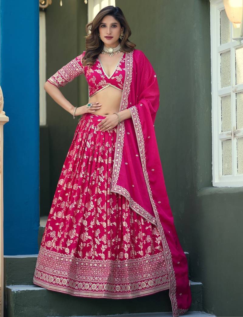 • Fabric : Silk • Color : Magenta • Work : Embroidery • Length : 2.5 Lehenga Details