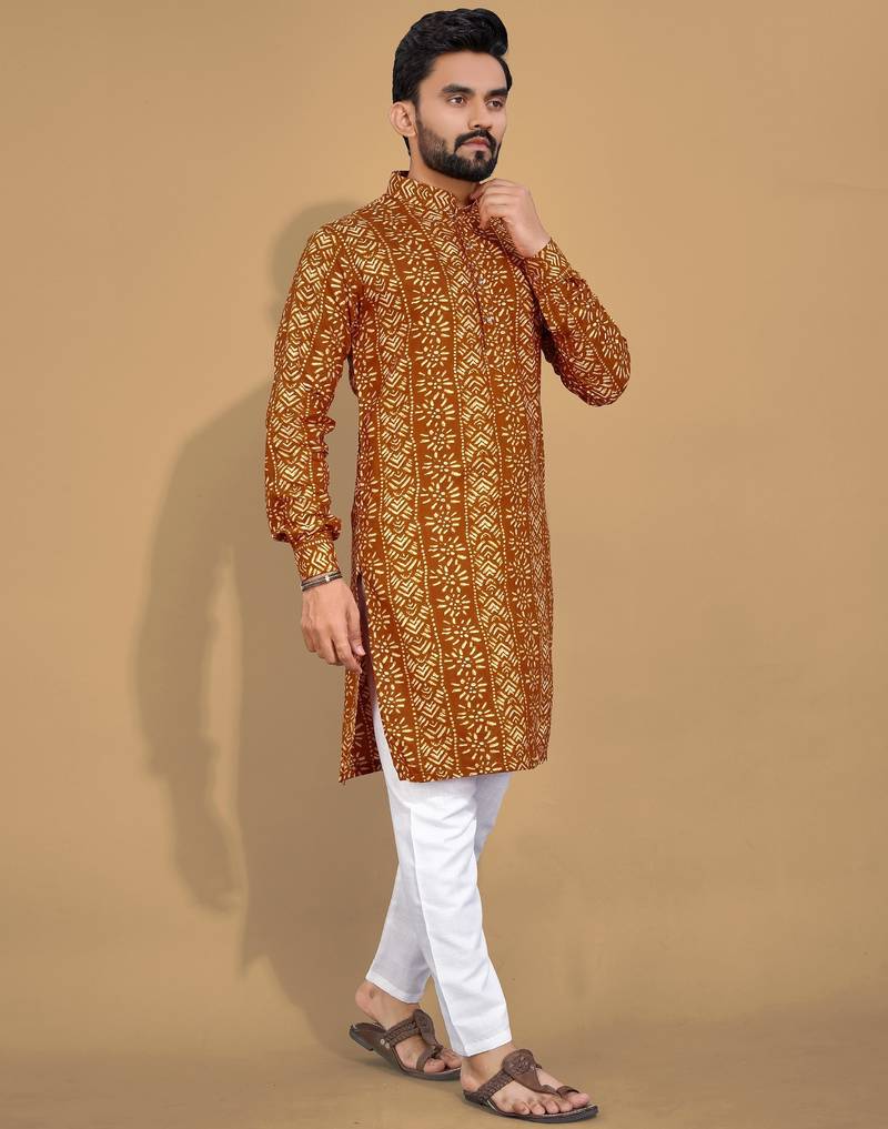 • Product Id : 4680547 • Package Details : 1 Kurta • Type : Kurta • Fabric : Cotton • Work : Printed • Look : Designer • Sleeve : Full Sleeve • Neck Style : Chinese Collar Kameez • Color : Mustard • Top Color : Yellow • Top Fabric : Cotton • Stitching : Stitched Payments [+]