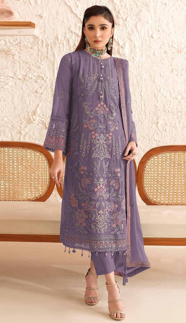 Purple Faux Georgette Embroidered Sequin Suit Semi stitched