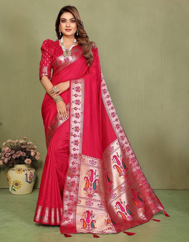 Red Paithani Gala Silk Saree With Blouse