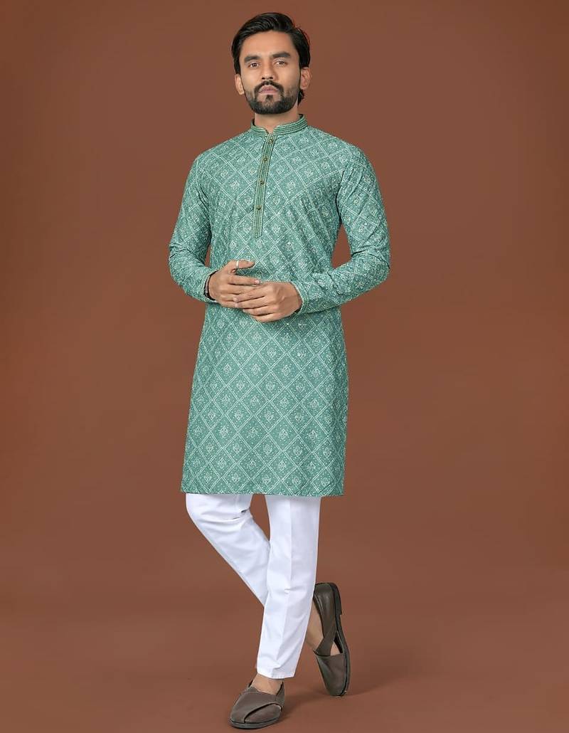 • Product Id : 4694767 • Package Details : 1 Kurta • Type : Kurta • Fabric : Silk • Work : Woven • Type : Thread Work • Look : Designer • Sleeve : Full Sleeve • Neck Style : Chinese Collar Kameez • Color : Sea Green • Top Color : Blue • Top Fabric : Silk • Stitching : Stitched Payments [+]