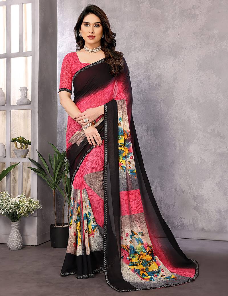 • Saree : Color- Pink / Fabric- Georgette • Blouse : Color- Pink / Fabric- Georgette Saree Details