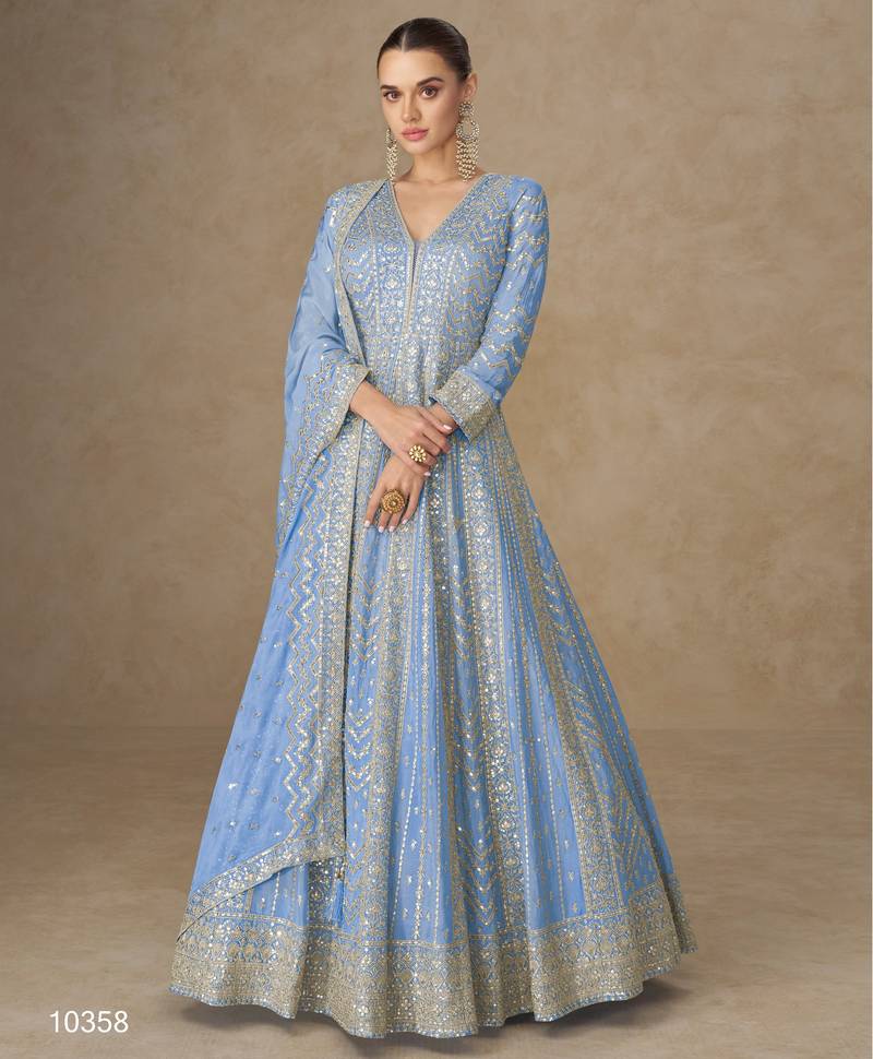 Blue Premium Heavy Chinon Embroidered Sequence Work Anarkali With Dupatta – Designer Party Wear Stitched
