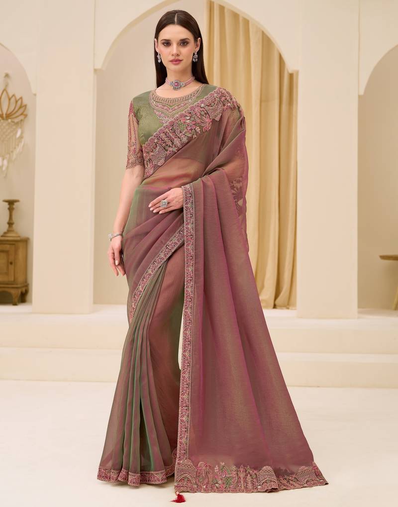 Dual Shade Georgette Saree With Brocade Zari Work Blouse