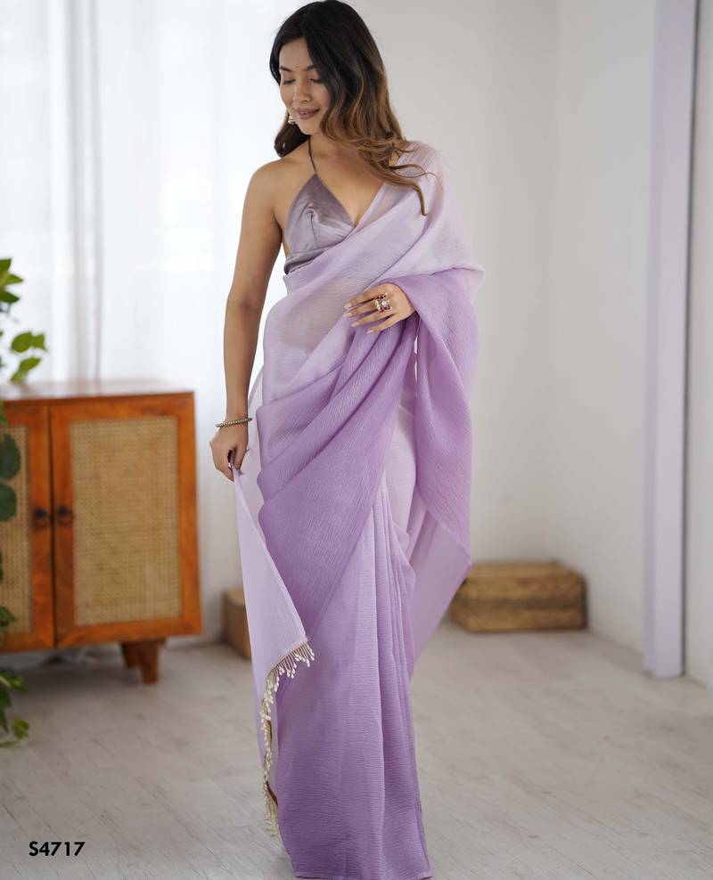 Light Purple Ready To Wear Candy Crush Art Silk Saree With Satin Art Silk Blouse