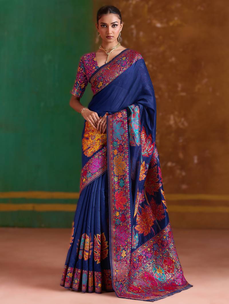 Navy Bule Modal Cotton Pashmina Weaving Saree – Ready To Dispatch