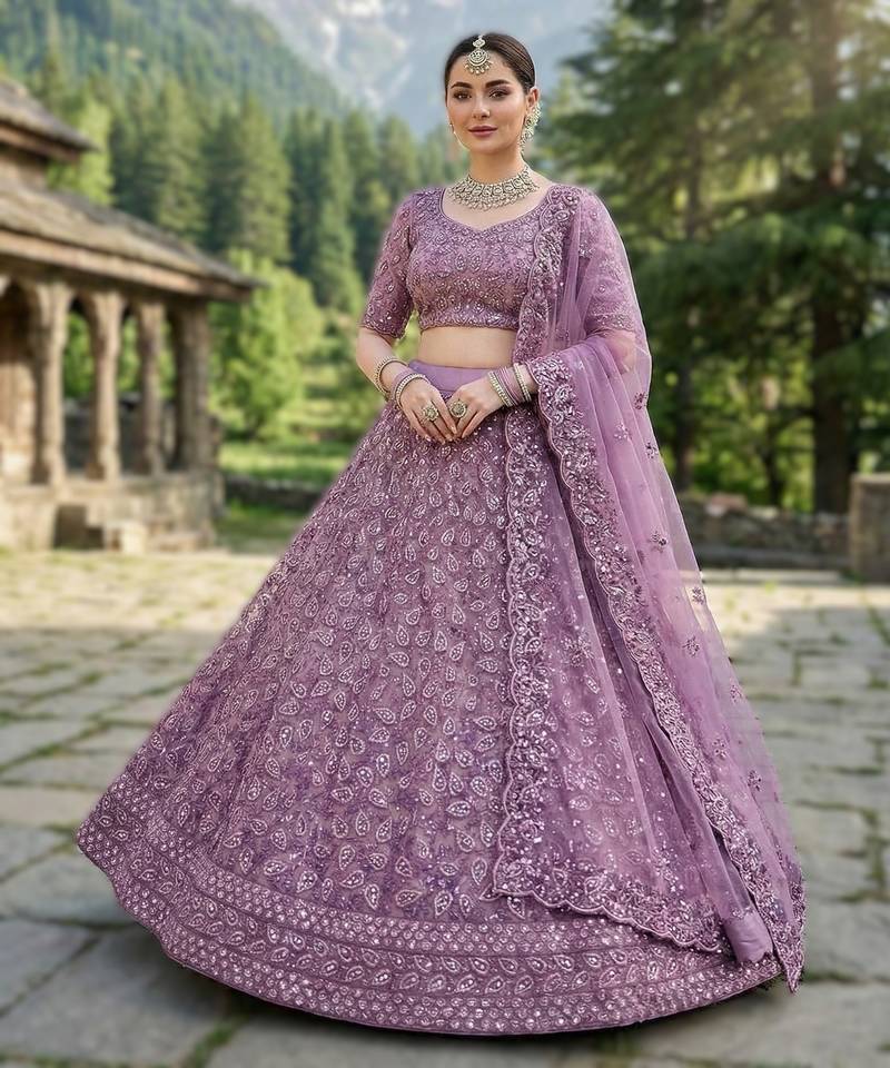 Onion Pink Premium Wedding Lehenga Collection | Heavy Embroidered Butterfly Net Lehenga With Diamond Work