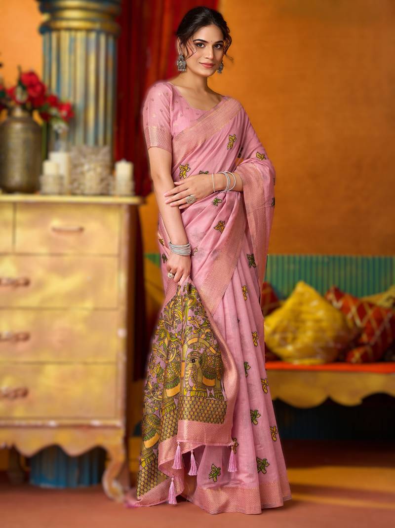 • Saree : Color- Pink / Fabric- Khadi • Blouse : Color- Pink / Fabric- Khadi Saree Details