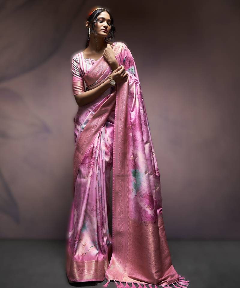 Pink Premium Handloom Art Silk Sarees – Luxurious Traditional Weaving