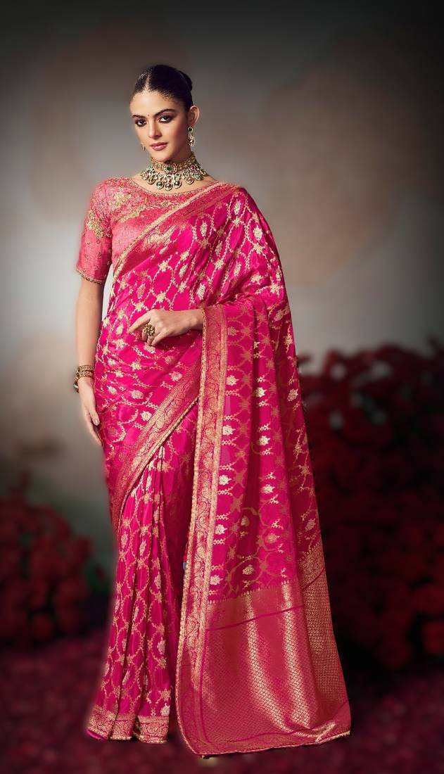 • Saree : Color- Pink / Fabric- Silk Blend • Blouse : Color- Pink / Fabric- Silk Blend Saree Details