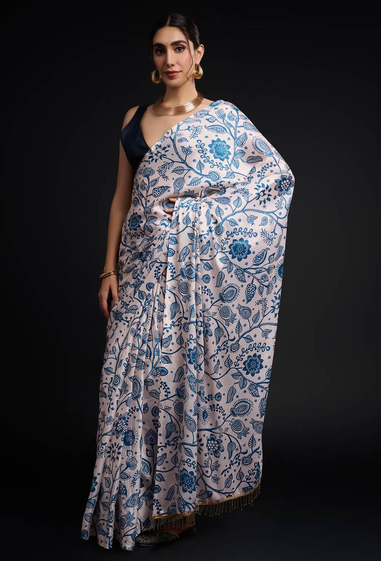 • Saree : Color- White / Fabric- Art Silk • Blouse : Color- Blue / Fabric- Art Silk Saree Details